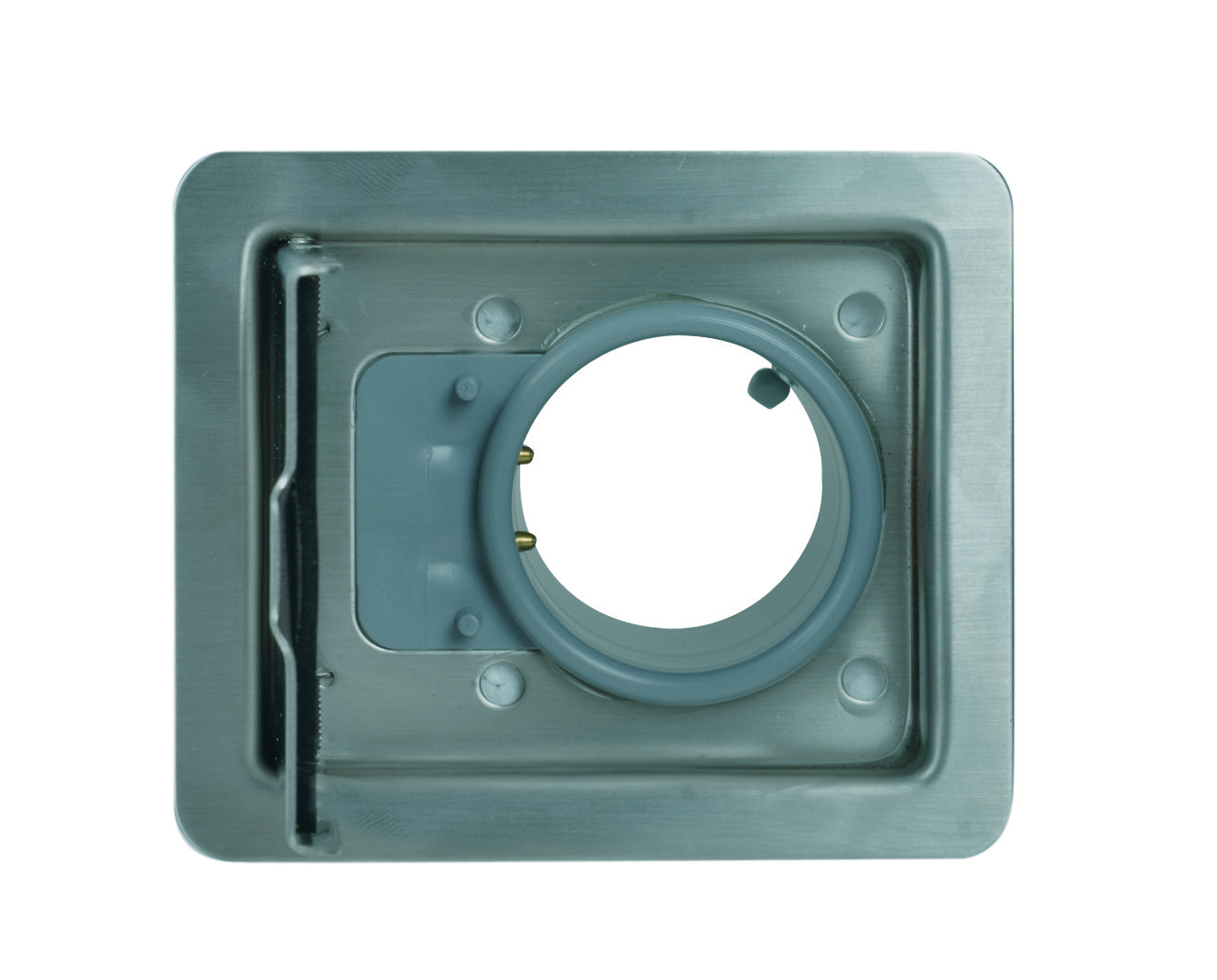 Edelstahlsaugdose für den Einbau in den Wänden oder im Fussboden.